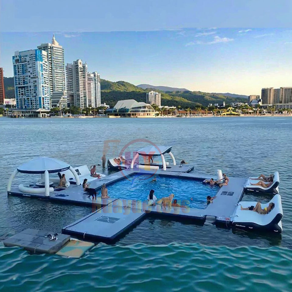 HUAYUE TOYS Nuova Isola Galleggiante Gonfiabile DWF di Fabbrica, Zattera Gonfiabile Molo Galleggiante, Pontone Gonfiabile Aqua Bana con Tenda