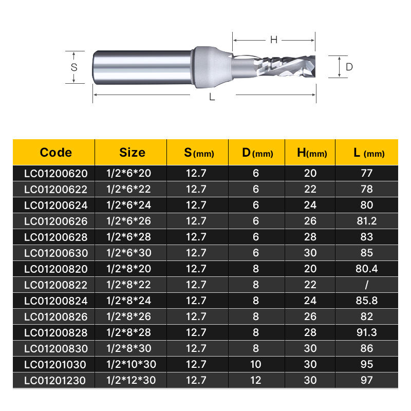 Fresa elicoidale HUHAO TCT per fresatura su e giù, fresa a spirale per scanalatura CNC, punte per router per legno, doppia bordatura elicoidale