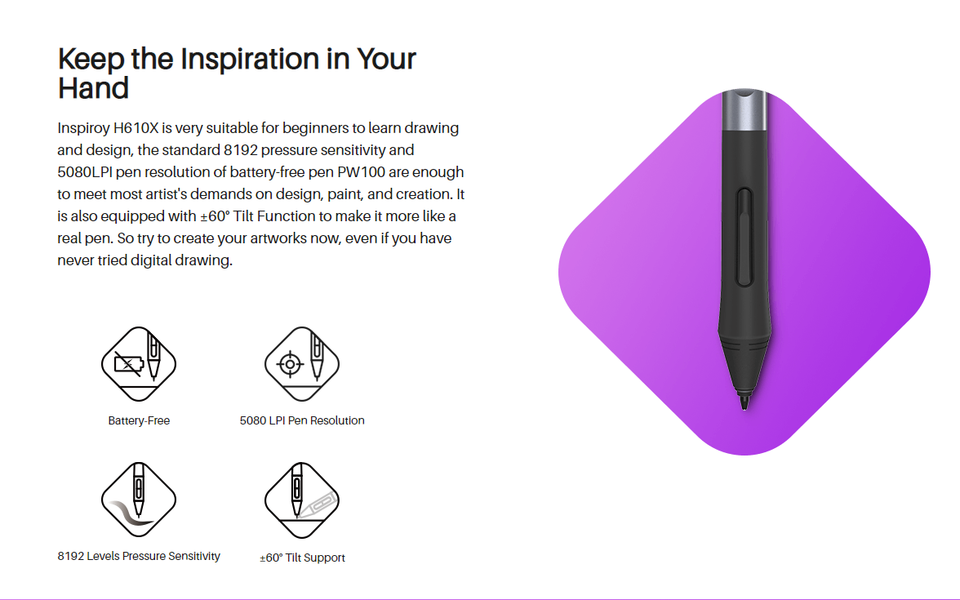 HUION H610X 60 Degree Tilt Other Computer Accessories Graphics Digital Drawing Tablet