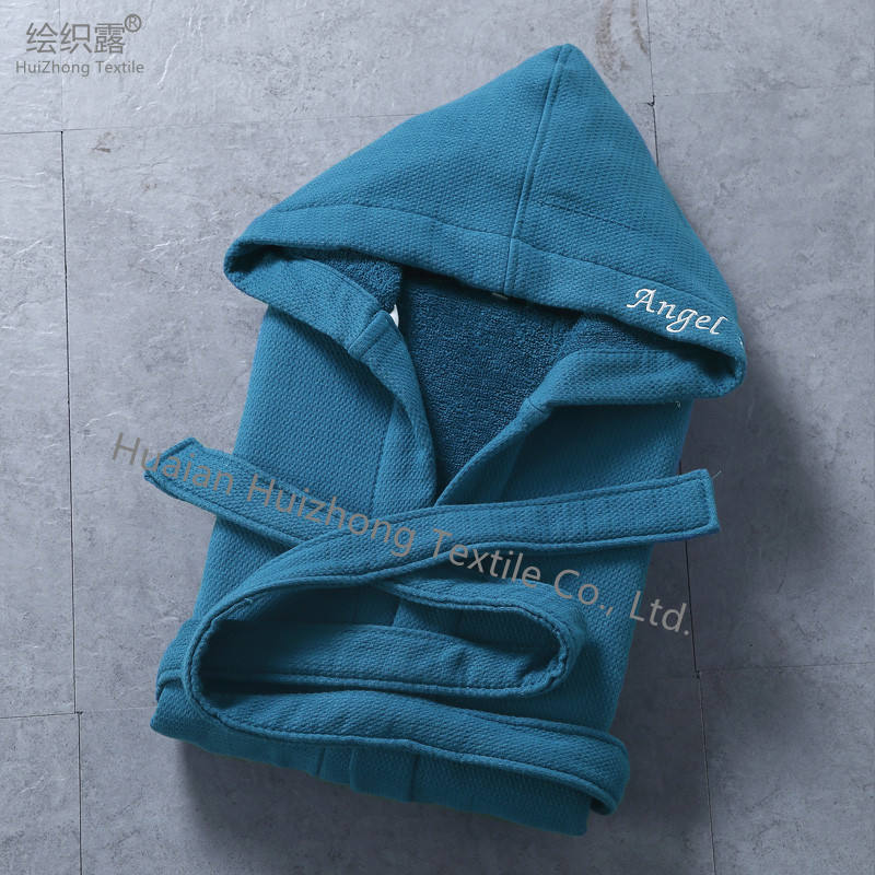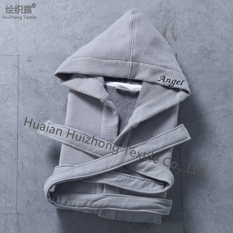 HUIZHONG accappatoi da bagno per la casa in cialda di cotone 100% con logo personalizzato/accappatoi in cotone intrecciato in spugna per hotel con cappuccio per uomo e donna