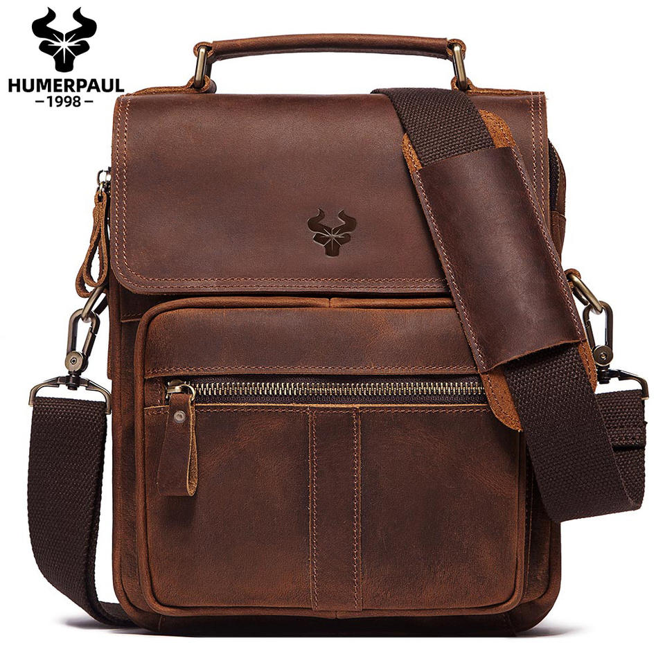 HUMERPAUL Casual Men Shoulder Bag Men Vintage Handbag Messenger Bag Leather Waterproof Sling Business Single Crossbody Bag
