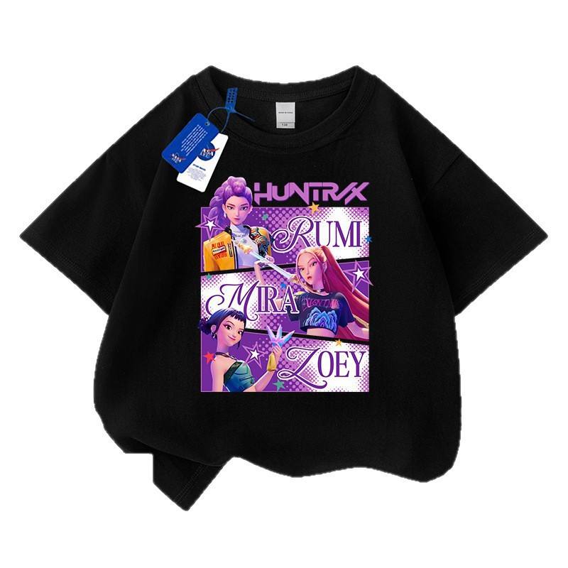 T-shirt con stampa personaggi HUNTRX Rumi Mira Zoey - Maglietta casual in cotone a maniche corte a collo alto per bambini, taglie forti, nuovo regalo per la festa dei bambini