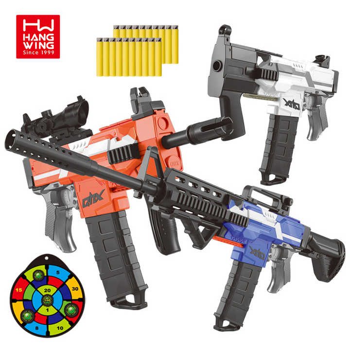 Fucile Mitragliatore Elettrico HW per Bambini, Giocattolo da Esterno con Proiettili Morbidi e Suoni, Colore Solido, Regalo per Bambini