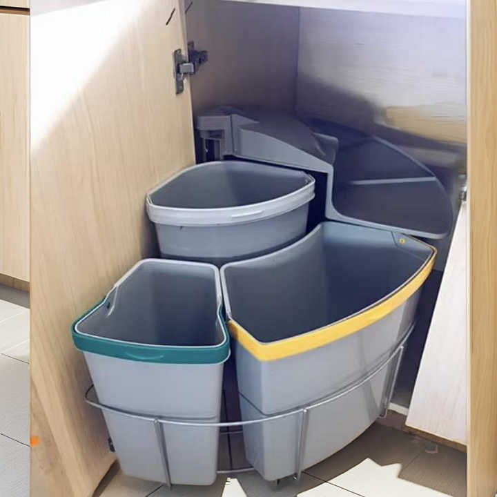 Set di Contenitori per Rifiuti da Cucina HW in Plastica, Girevoli a Forma di Ventaglio, Nascosti, Multi-Scomparto per la Classificazione