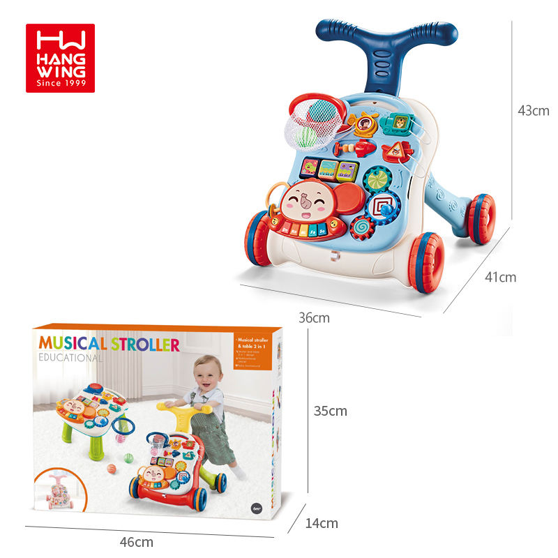 HW Toys 2023 New Born Baby & Toddlers Learn to Push Walker Play Early Educational Learning Table Infant Musical Stroller Toy