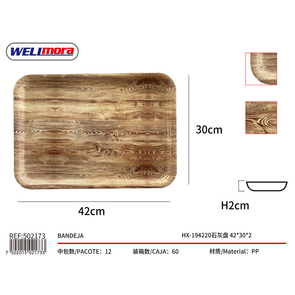 HX-194220 Decorative Acacia Wood Tray 42*30*2-Stainless Steel & Metal Serving Tray for Food 42mm*30mm*2mm