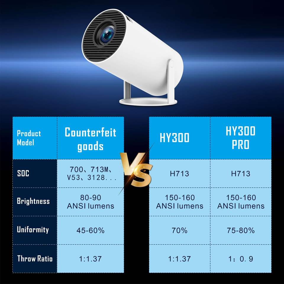 Proiettore Portatile LCD HY300pro da Casa 4K Ultra HD Proiezione Wireless a Parete Lampada LED 3D da Soggiorno Batteria Internazionale