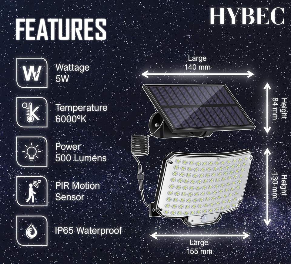 HYBEC - Outdoor Solar Lamp with Motion Sensor, Automatic Solar Lighting for Garden, Entrance or Terrace 5W