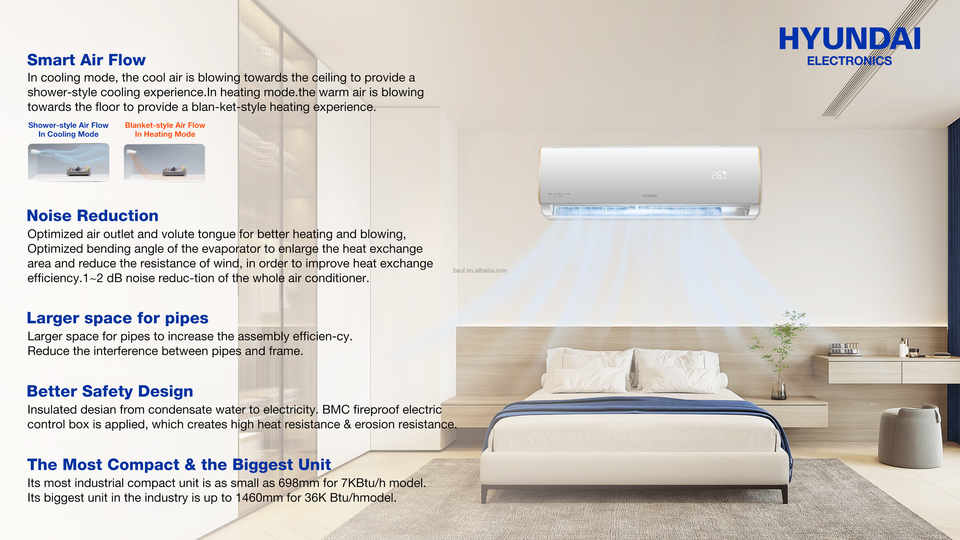 Condizionatore d'Aria Split Inverter DC HYUNDAI 12000 BTU, 22dB, Controllo Remoto Smart WiFi, Sistema di Climatizzazione per Casa e Hotel, Nuovo