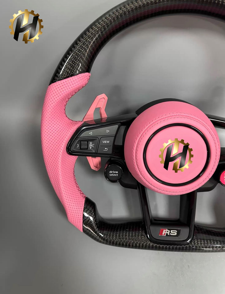 HZ Audi A5/A6/A7/A8/Q5/Q7/Q8/TT/R8 Pink Carbon Fiber Sports Steering Wheel-Durable High Quality Auto Part