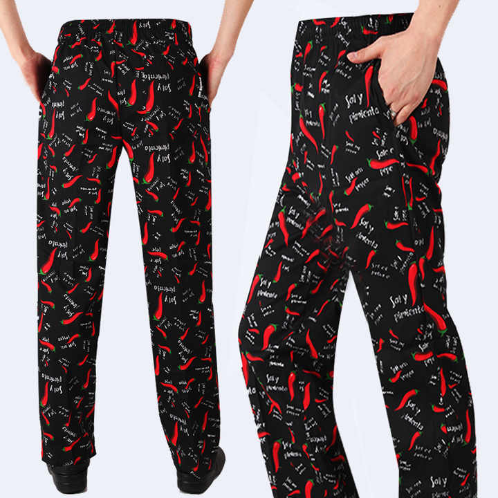 Pantaloni da Chef HZO-22006 per Uomo, Uniforme da Cucina per Ristorante, Pantaloni da Lavoro Stampati con Vita Elastica