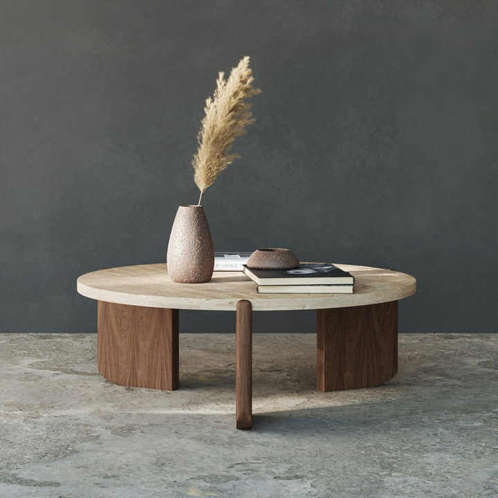 HZX naturale moderno travertino lastra di marmo per soggiorno mobili in pietra Beige travertino Cardin tavolini rotondi