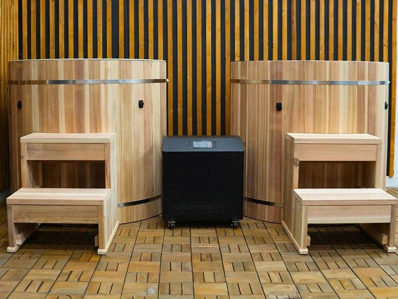 Hachillspa barilotto di terapia del freddo 304 acciaio inossidabile o PP Liner tuffo a freddo per 1 persona bagno di ghiaccio all'aperto con gradini e copertura