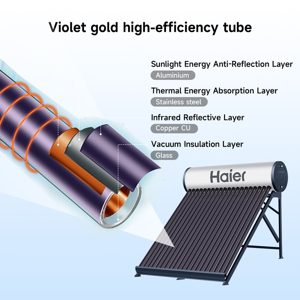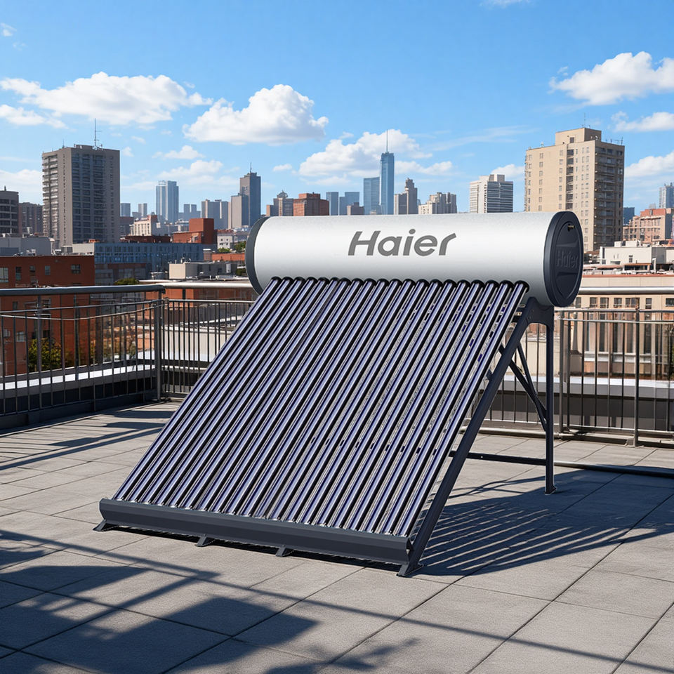 Scaldabagno Solare Haier a Risparmio Energetico, Non Pressurizzato, con Tubi Sottovuoto, 100L 150L 200L 300L