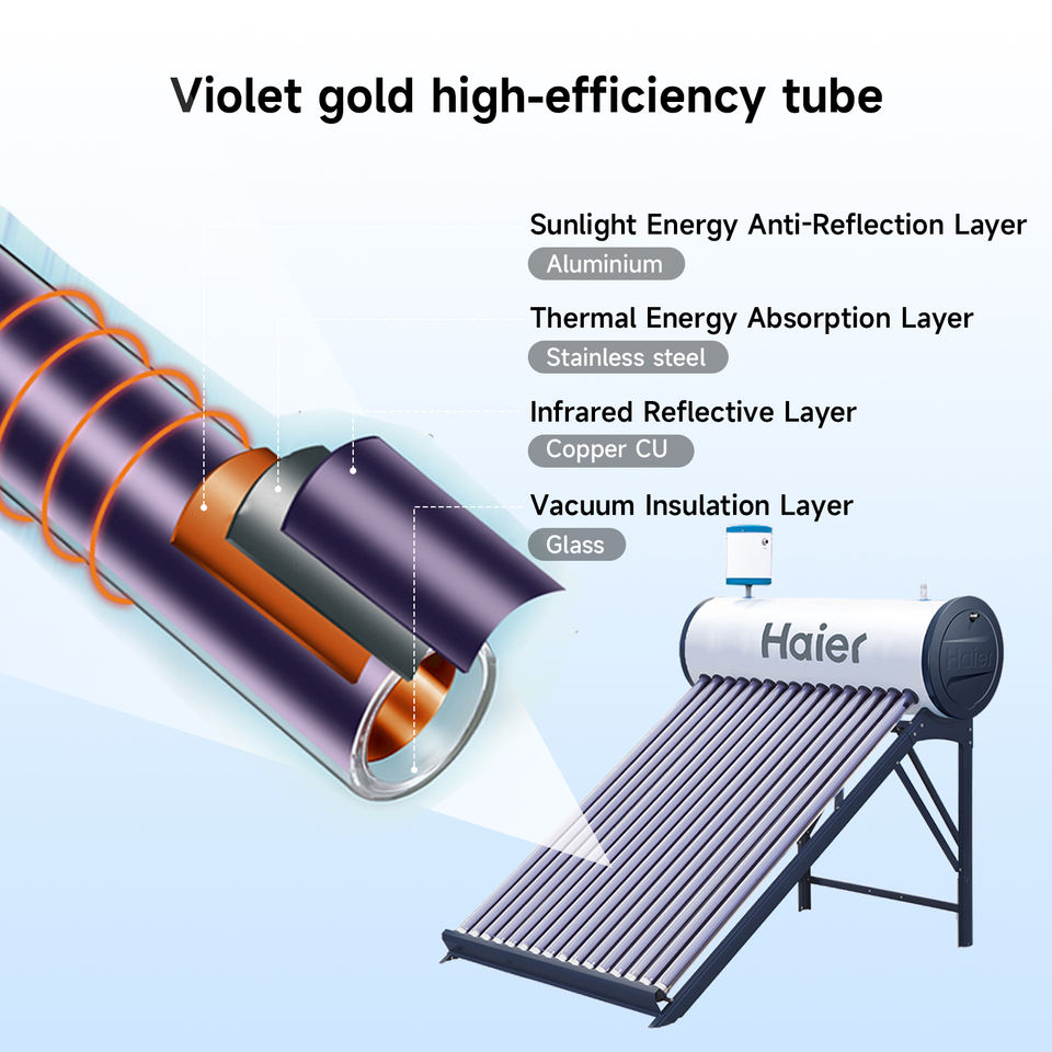 Nuovo Arrivo Haier: Scaldabagno Solare a Tubi Sottovuoto Non Pressurizzato da 100L, 150L, 200L, 300L per Uso su Tetto, a Energia Solare Termica