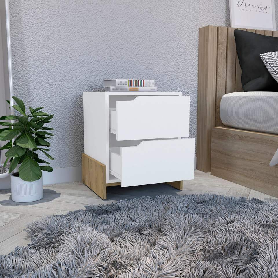 Comodino Haines bianco/macadamia a 2 cassetti con base robusta di DEPOT E SHOP