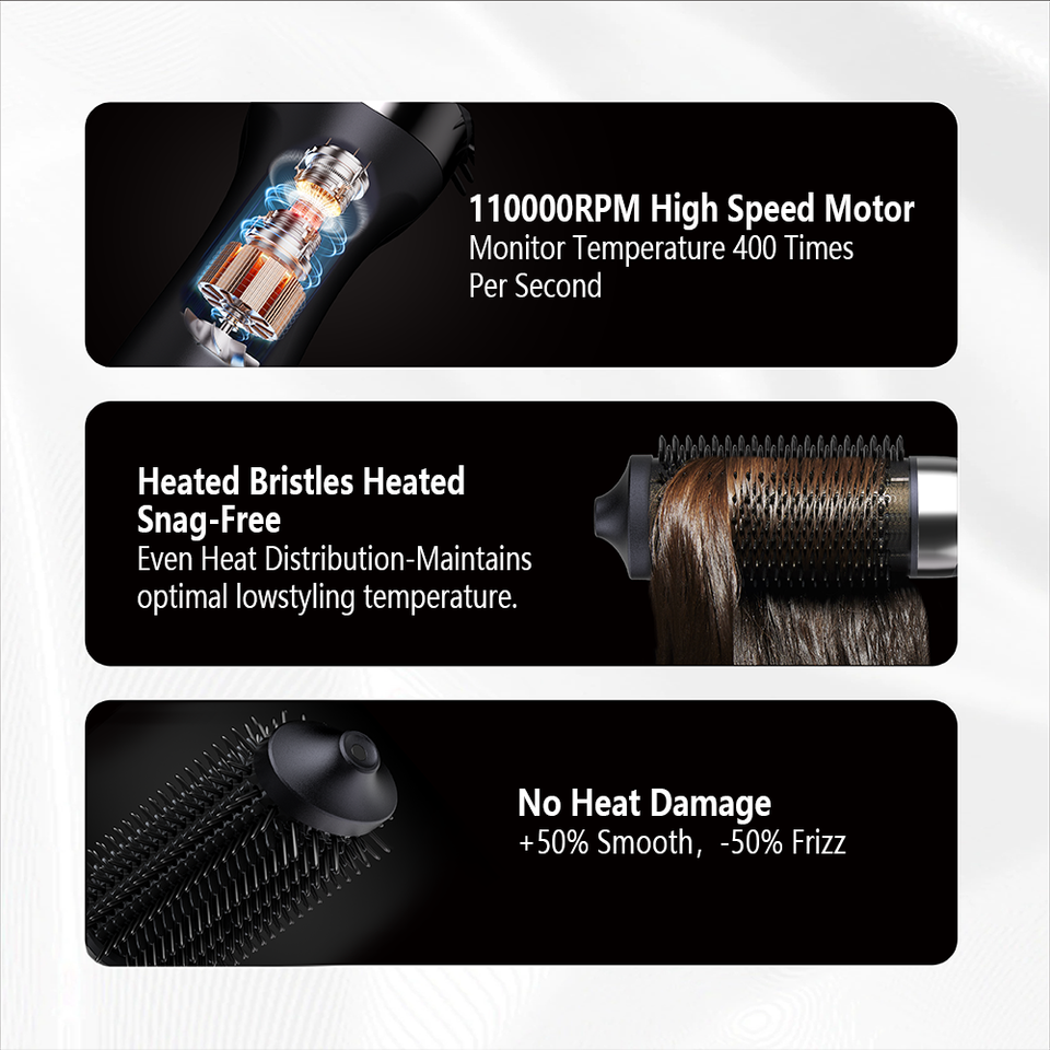Apparecchio per la Cura e lo Styling dei Capelli 3 in 1, Spazzola Asciugacapelli ad Aria Calda One-Step Wet to Dry