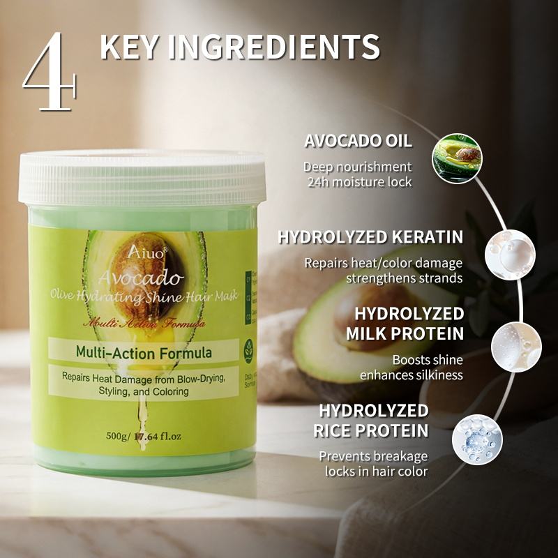 Main Ingredient:Avocado Oil, Hydrolyzed Keratin, Olive Oil, Hydrolyzed Rice Protein