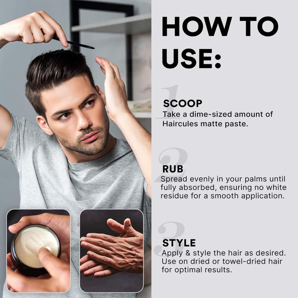 Haircules opache pasta per capelli per uomo forte tenere Non-grasso Styling argilla definizione di lunga durata Texture nessun lustro fiocchi funziona tutto