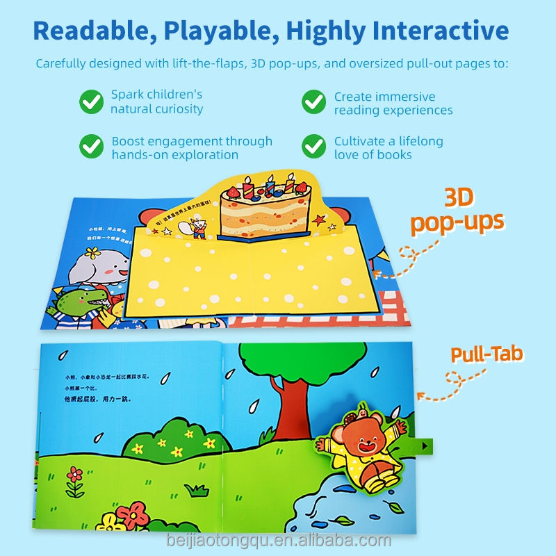 Libro Illustrato Pop-up 3D per Bambini 'Sunshine' di Hairun, Orsetto che Fa Amicizia, Stampa Personalizzata per Età 2-6 Anni