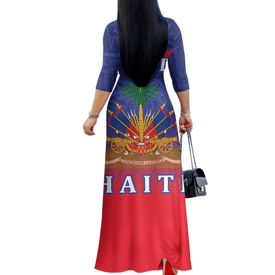Haitian Plus Size Dresses for Women 3/4 Sleeves V-neck Max Dress for Ladies with Belt Trendy Chic Curvy Elegant Outwear Vestidos