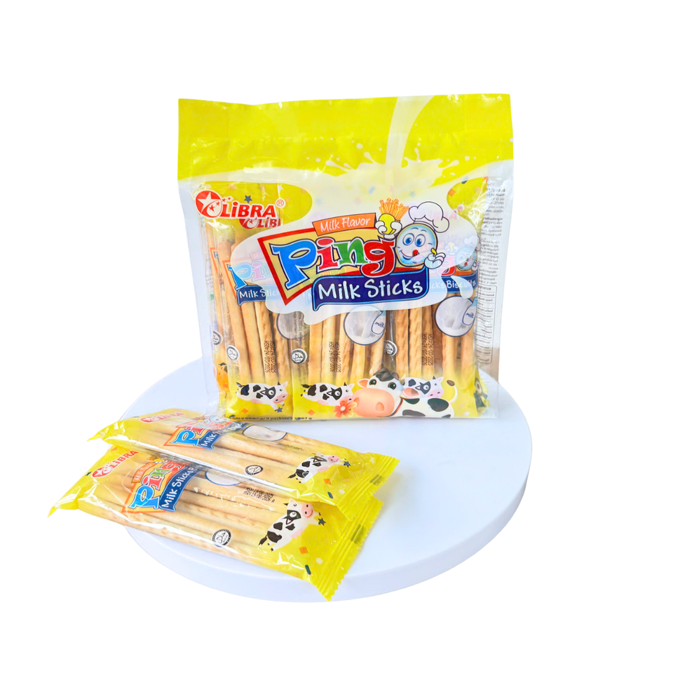 Halal Certified Milk Stick Biscuits 186G Yellow Bag OEM ODM Snack Supplier