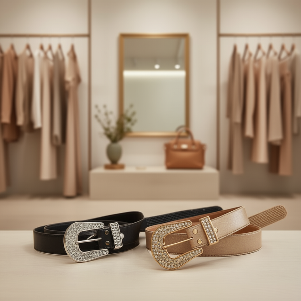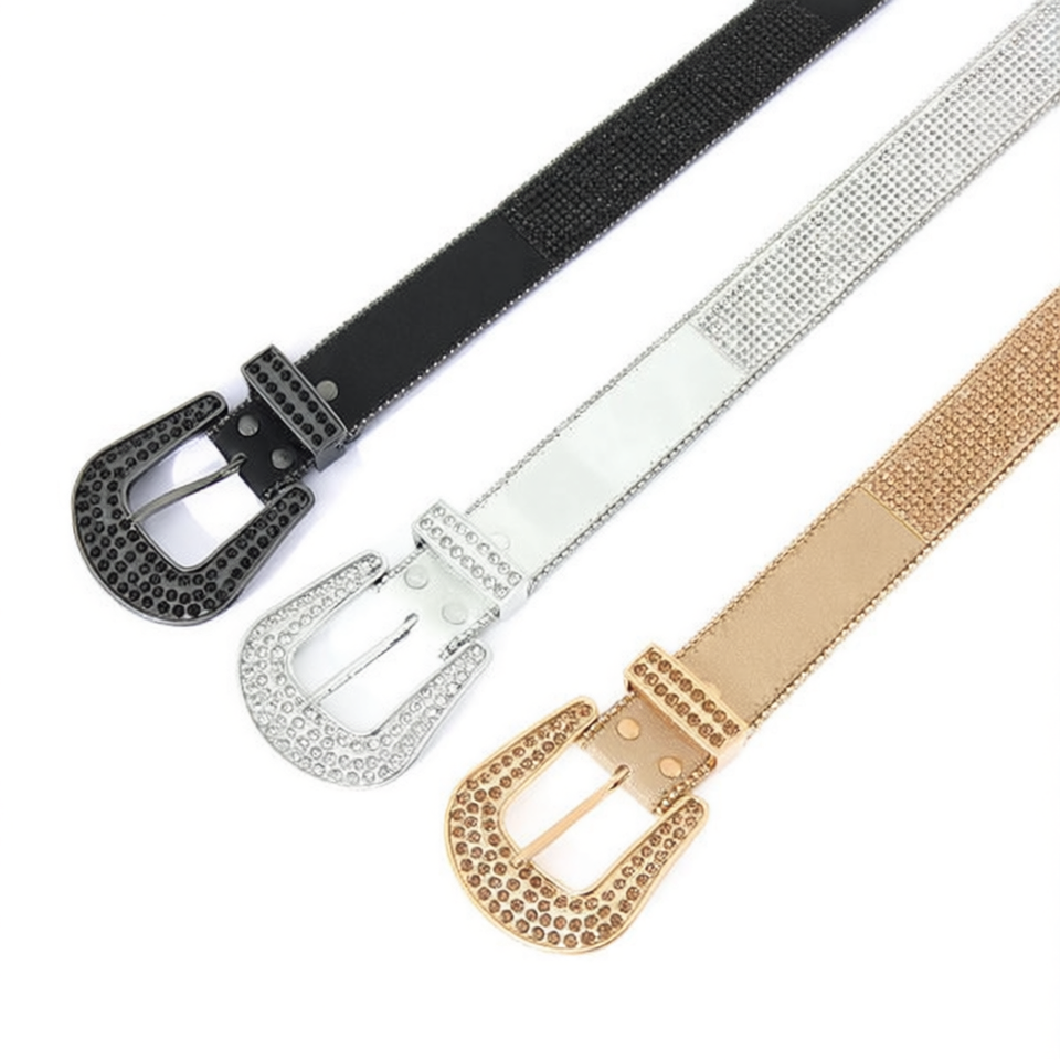 Cintura Angelina in Vera Pelle 3,8cm 105cm con Fibbia a Strass, Accessorio Moda Casual da Donna