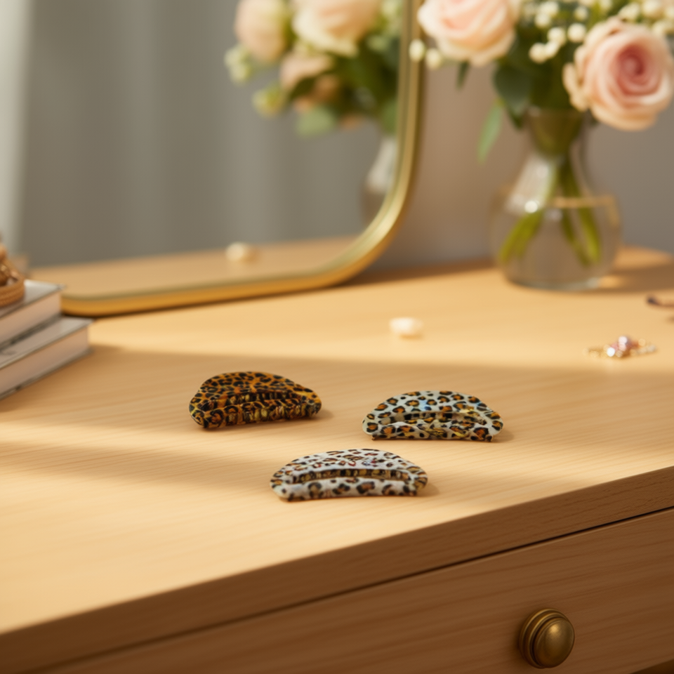Fermaglio per capelli a mezza luna con stampa leopardata da 10,5 cm per donna, accessorio di moda