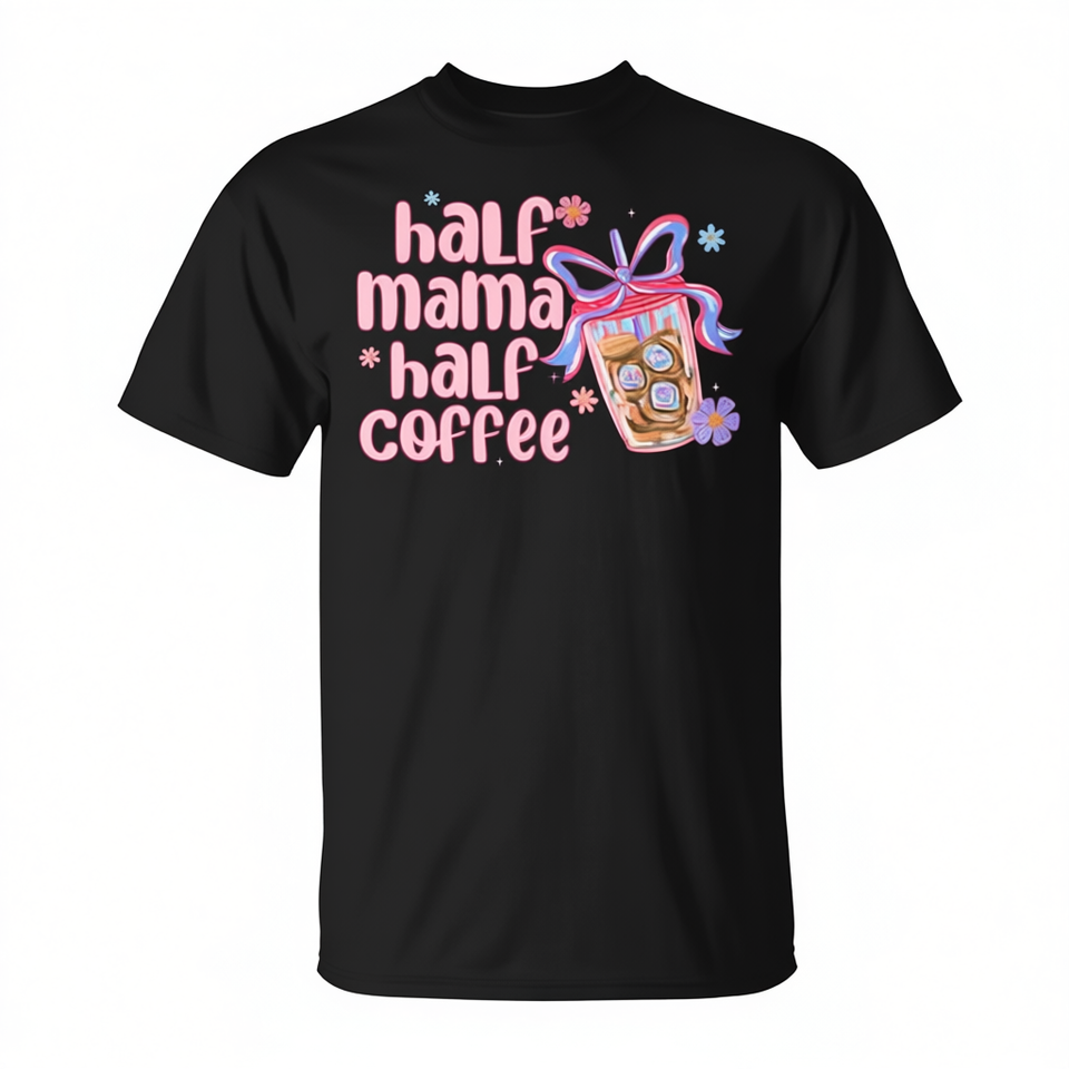 T-shirt da donna Half Mama Half Coffee con stampa digitale a maniche corte e girocollo