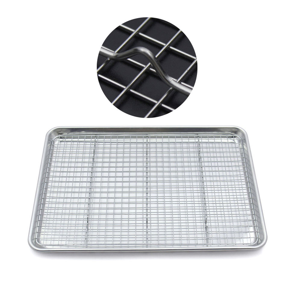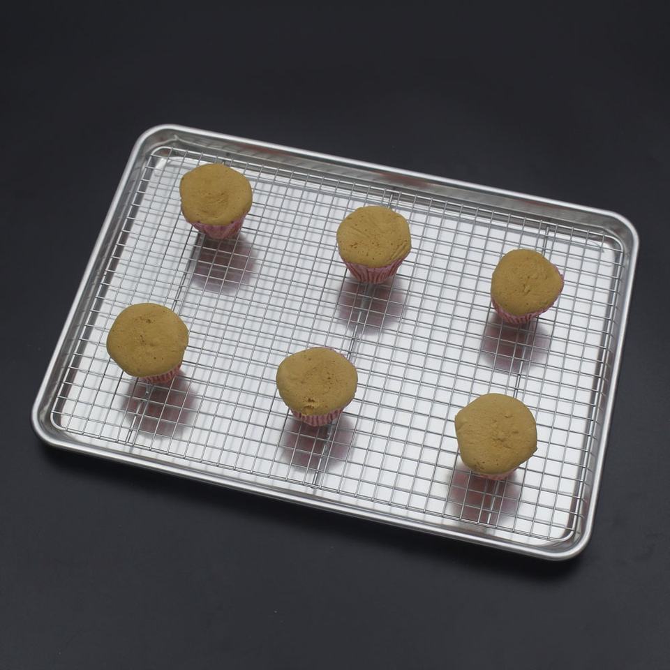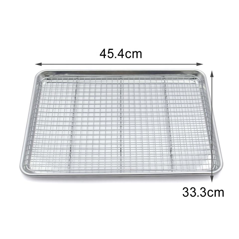 Mezzo foglio di alluminio teglia con cremagliera Set di cottura in metallo vassoio di cottura per il nome della torta con griglia di raffreddamento