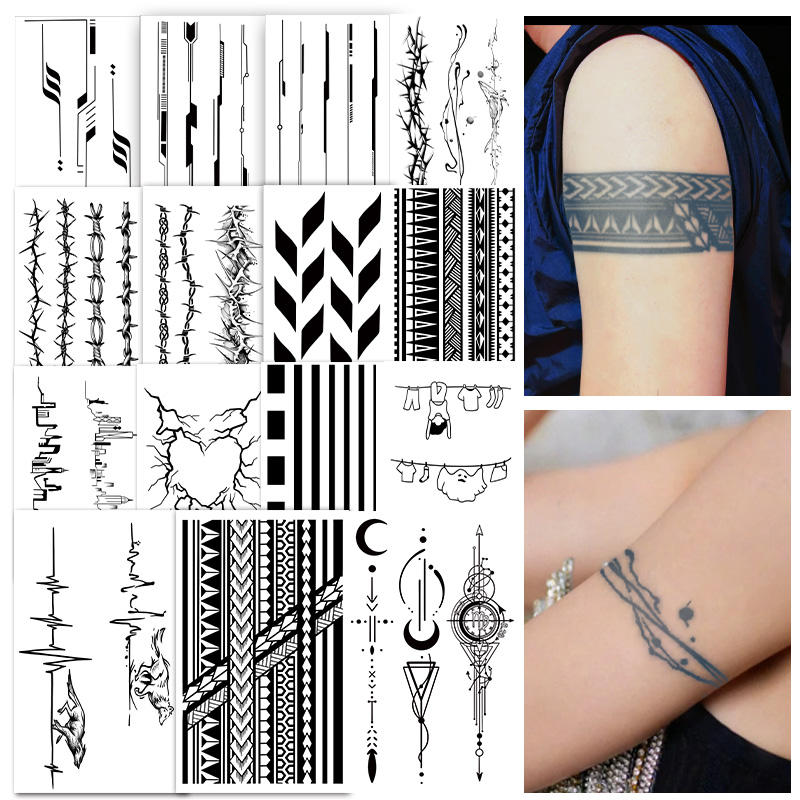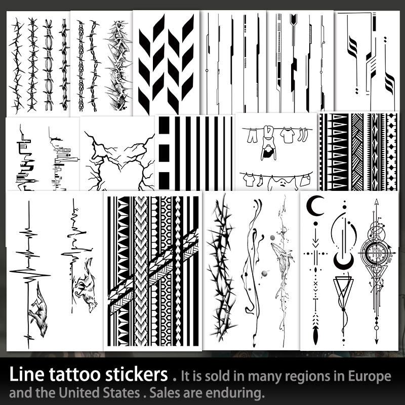 Mezza manica temporanea tatuaggio linea geometrica fascia da braccio Semi permanente tatuaggio impermeabile per 2 settimane tatuaggio a base di erbe per il braccio
