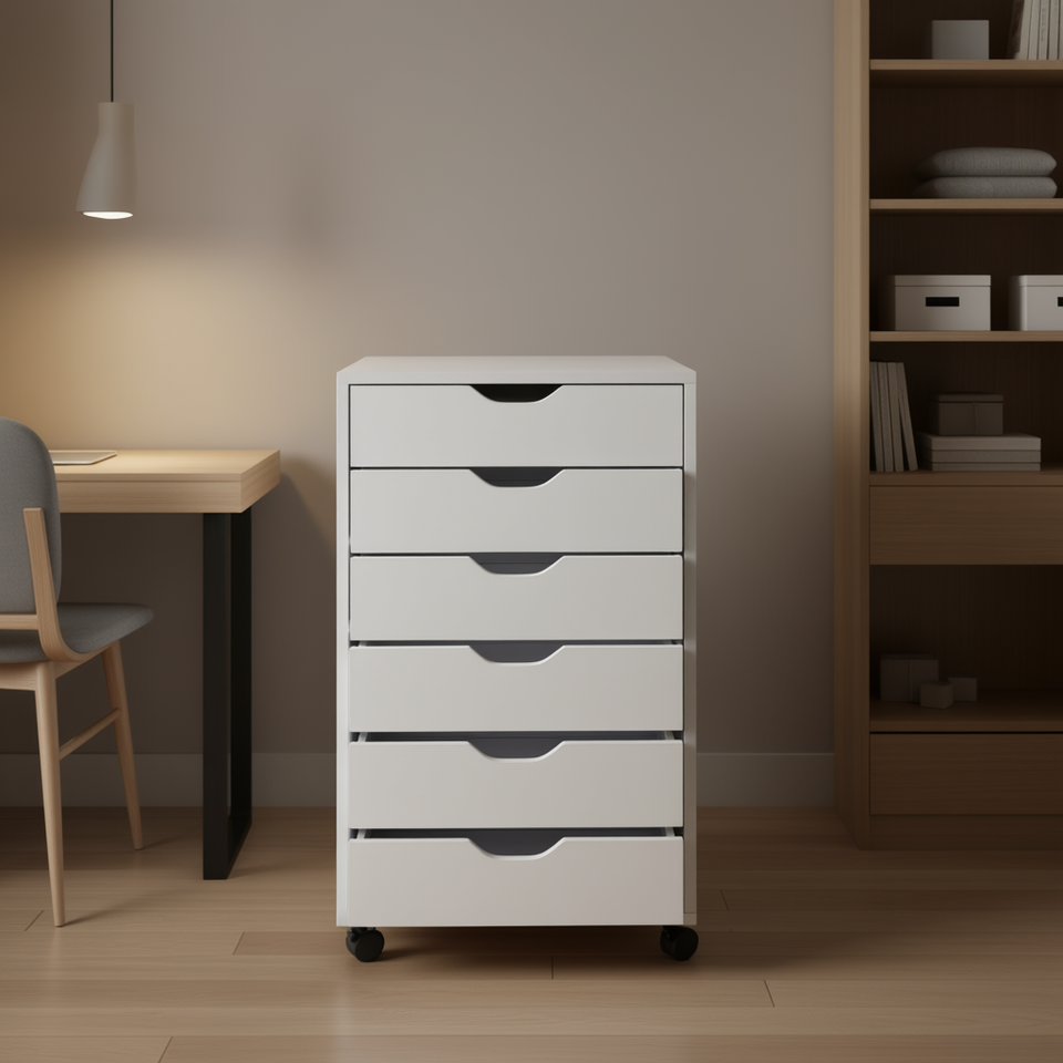 Halifax 7 Drawer White Storage Cabinet 33x15x85cm Minimalist Design for Closet or Office