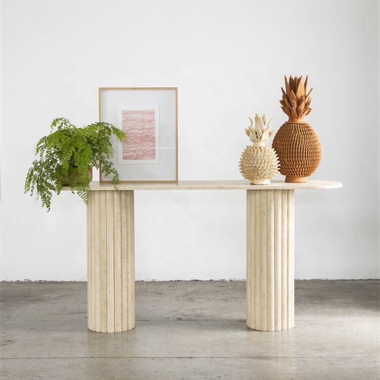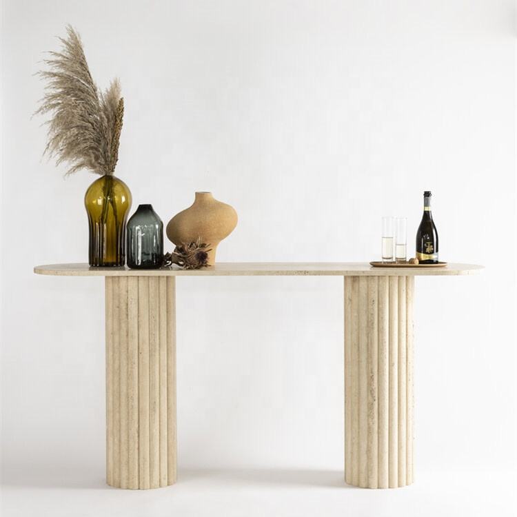 Tavolo Console di Lusso in Marmo Travertino Bianco e Nero Opaco per Ingresso, Lobby di Hotel 5 Stelle, Angolo del Soggiorno