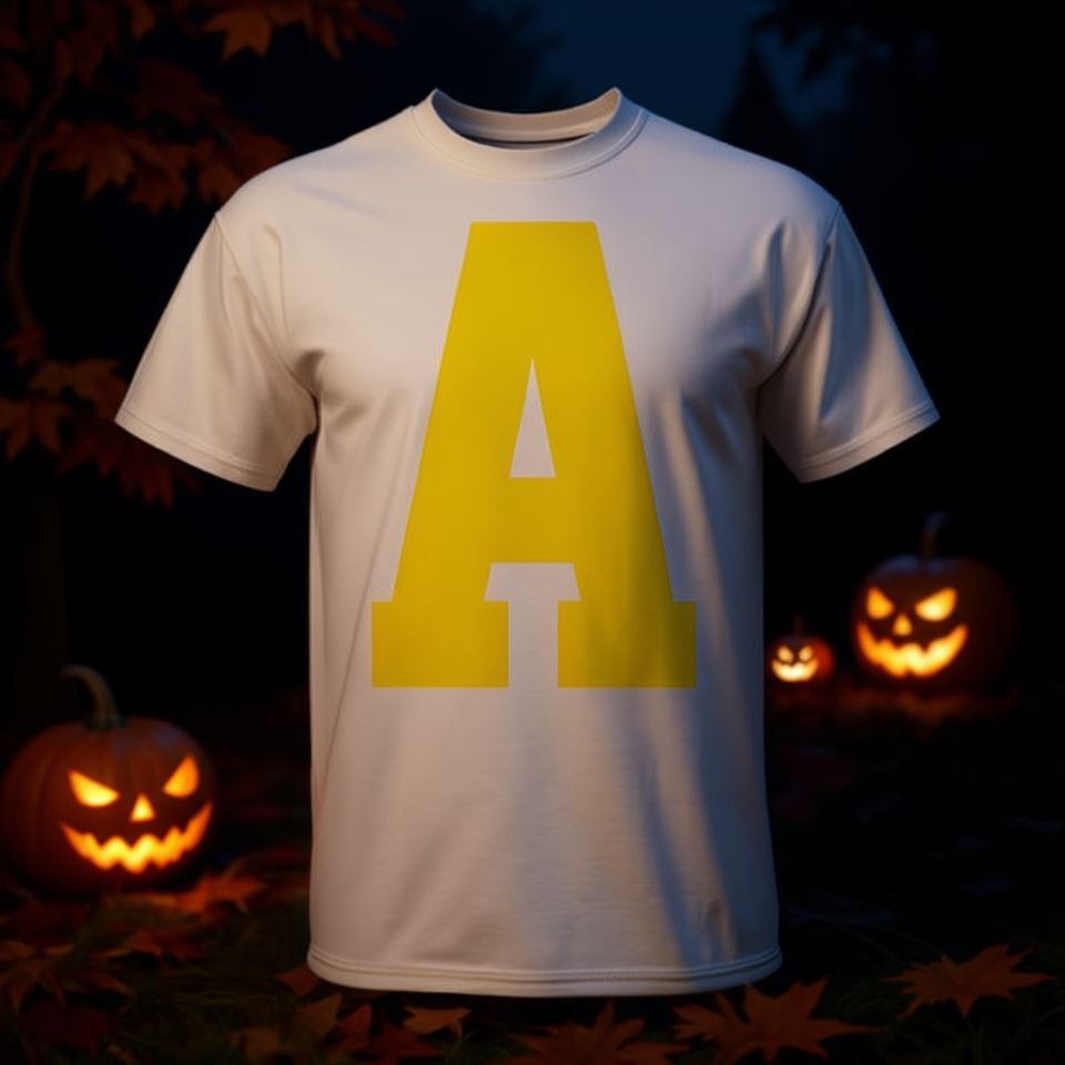 T-shirt con lettera A coordinata per gruppo Halloween 2025