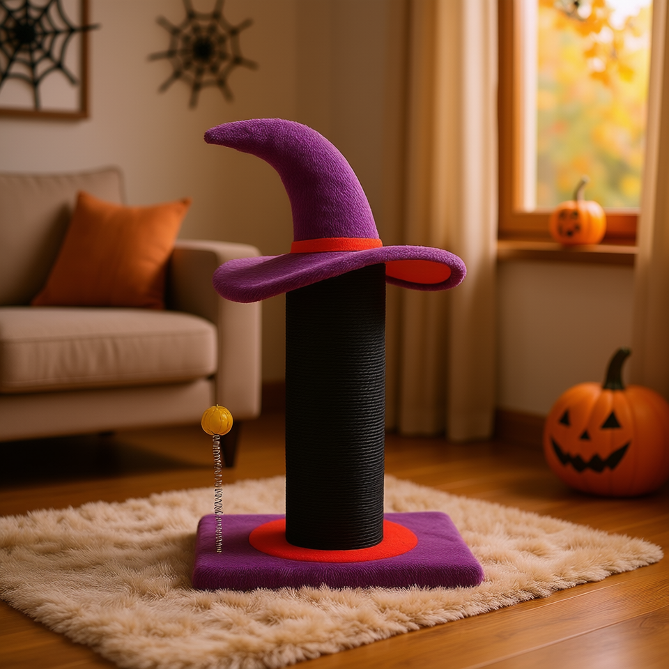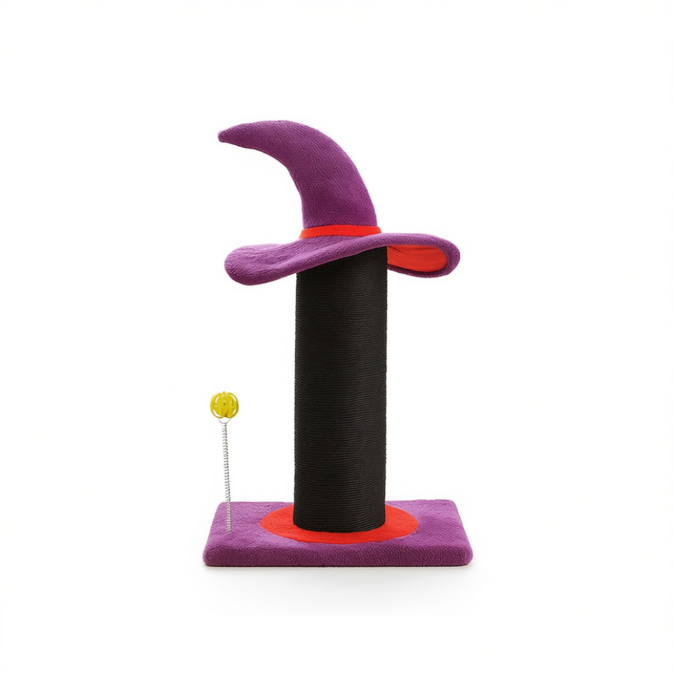 Tiragraffi per Gatti di Halloween 60cm con Corda in Sisal, Design Cappello da Mago, Base Robusta, Giocattolo per Gatti da Interno