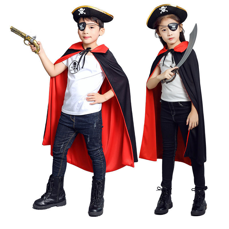Halloween Children Adult Hooded Double-Sided Cosplay Party Witch Reversible Vampires Black and Red Cape CRHO-002