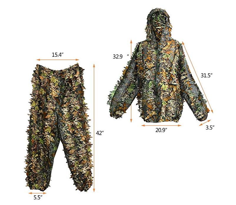 Halloween Costume Hooded Camouflage Clothing Sniper Hunting Lightweight 3D Leaf Ghillie Suit for Adult