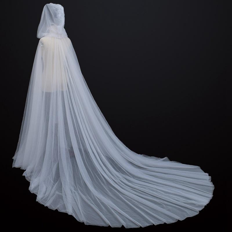 Halloween Costume for Women Hood Tulle Cape Cloak Black White Red Wedding Bridals Floor Length Soft Mesh Cloaks