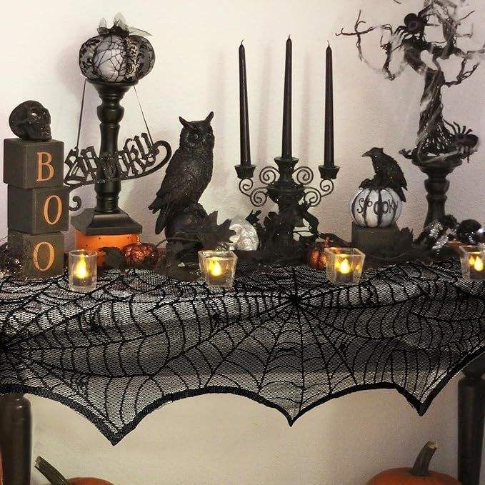 Decorazioni di Halloween: Copri Caminetto in Pizzo Nero a Ragnatela per Feste Festive