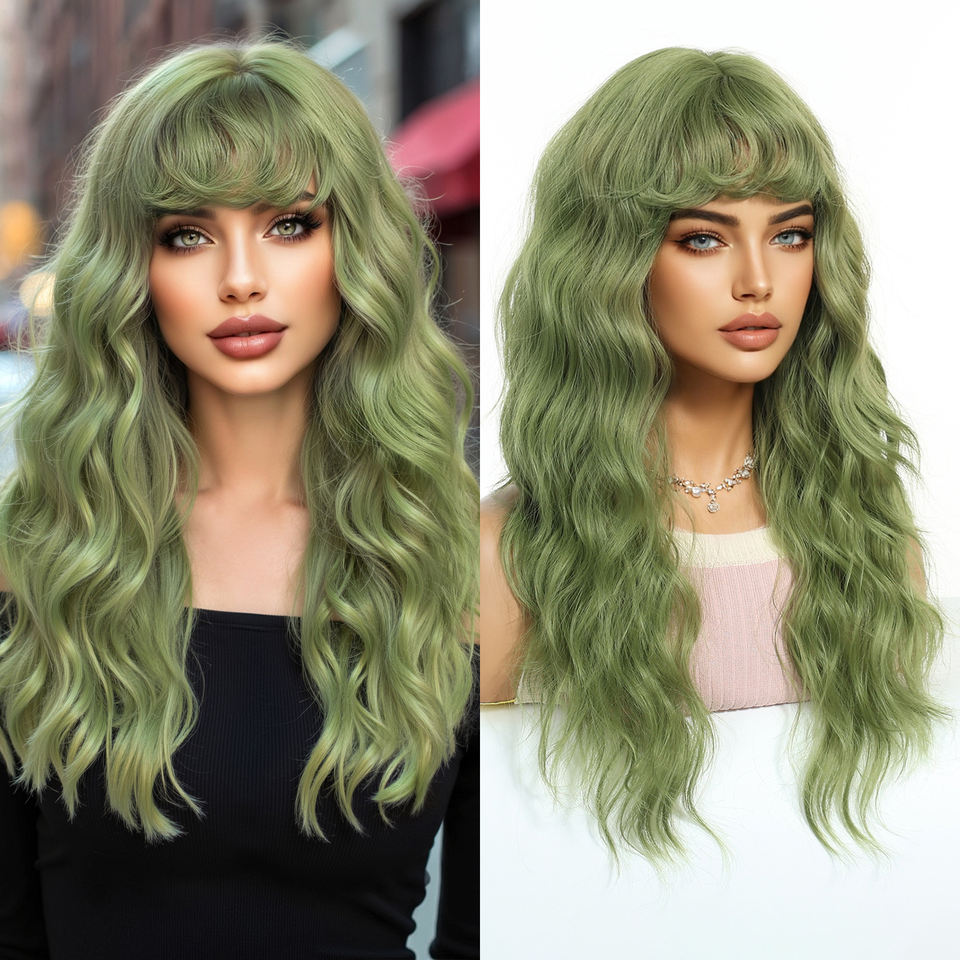Halloween Drag Queen Cosplay Party parrucca 22 "Ombre verde dritta sintetica parrucca lunga e riccia frangia onde ispirate Billie Eilish per