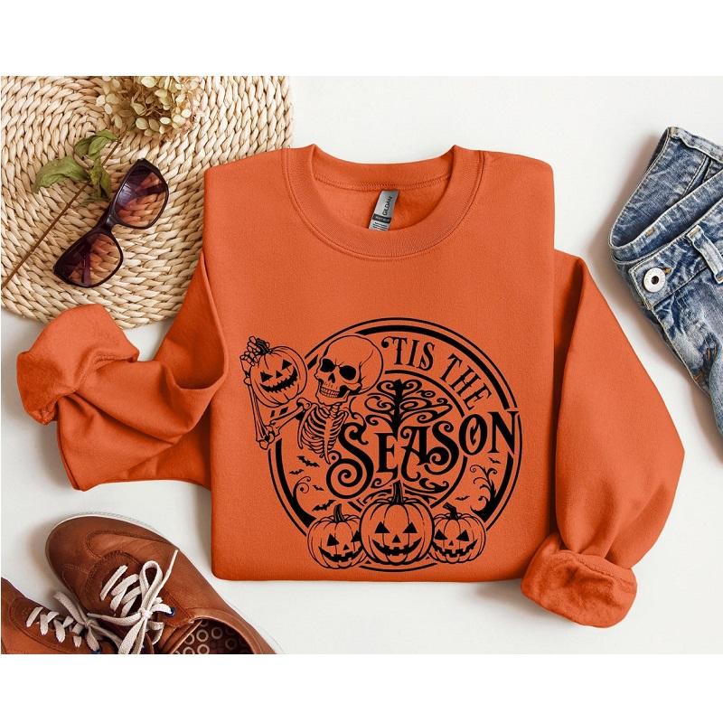 Halloween Funny Design Pumpkin Embroidered Women Sweatshirt for Spooky Season