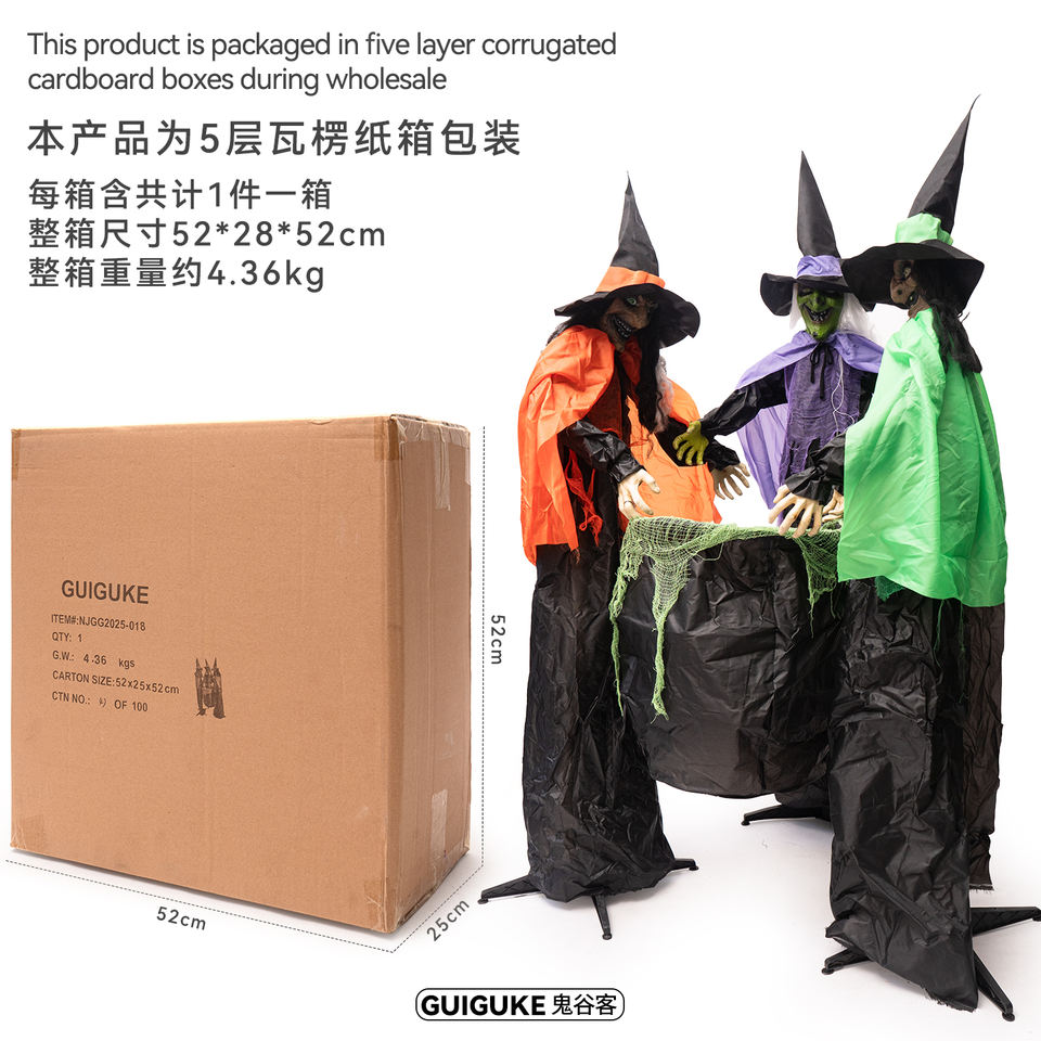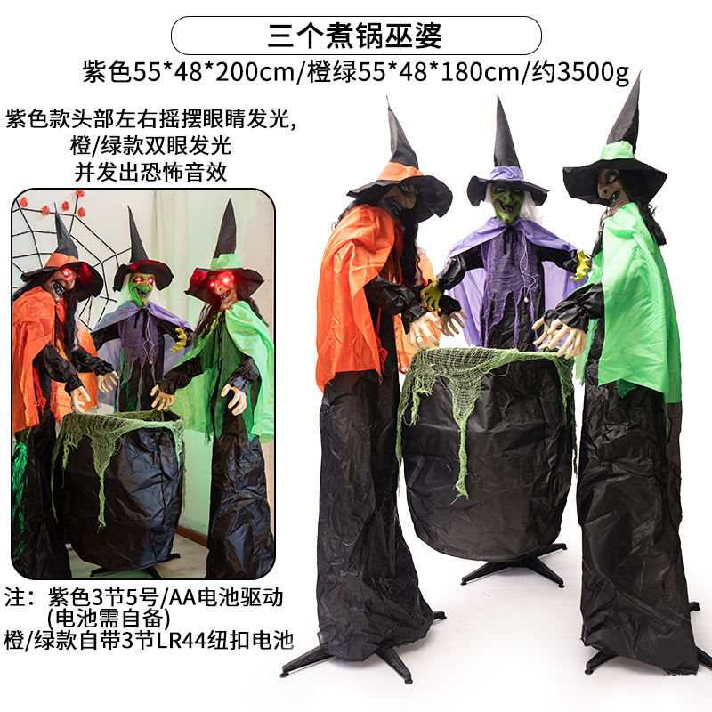 Statuetta di Tre Streghe che Mescolano il Pentola per Casa Stregata di Halloween, Fantasma Luminoso Elettrico a Induzione per Cortile Esterno