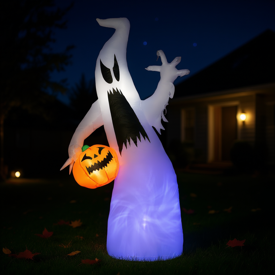 Decorazione Gonfiabile LED a Forma di Fantasma per Halloween, 1,8 m, Impermeabile, per Esterni, con Zucca Illuminata