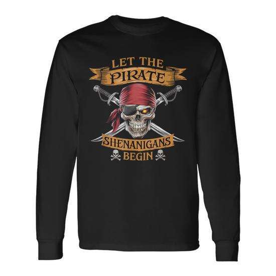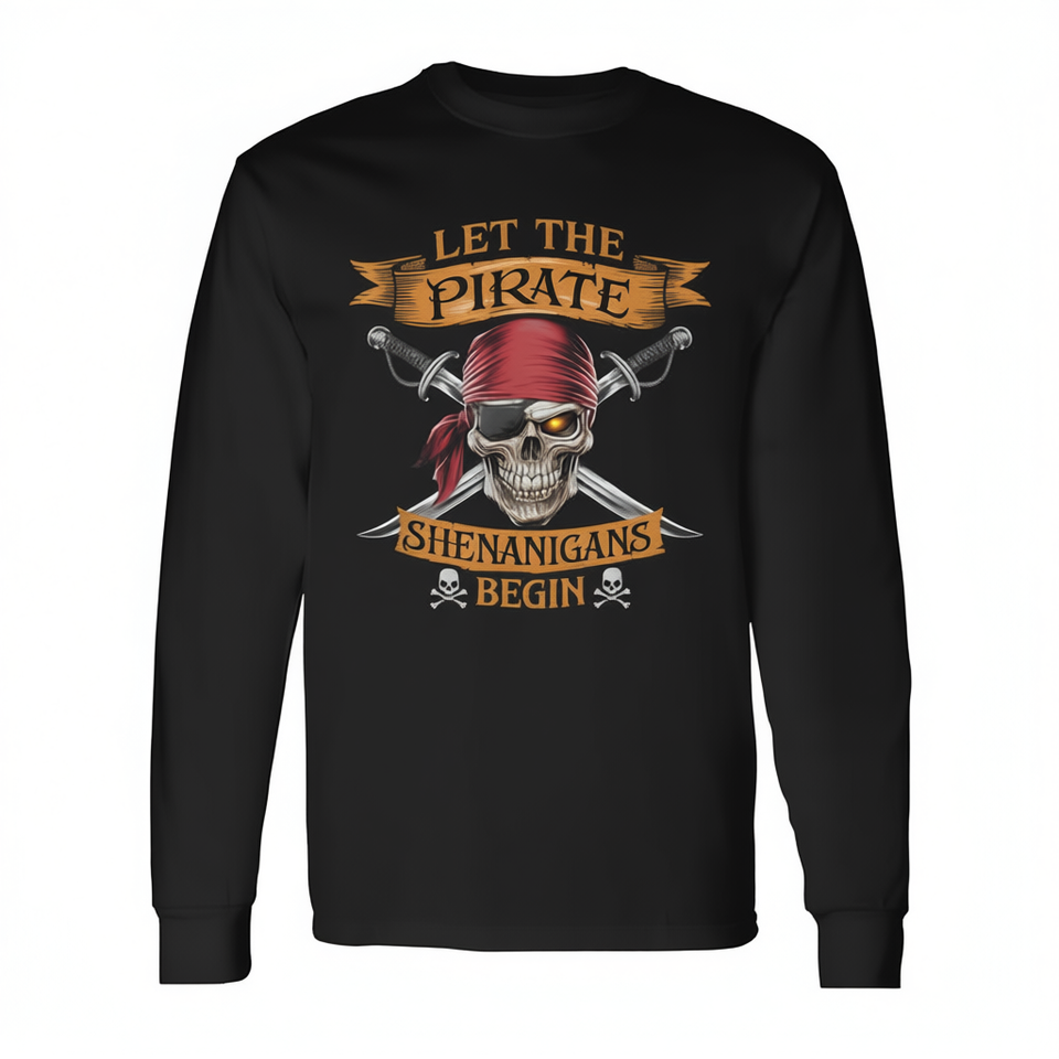 Maglietta a Maniche Lunghe con Teschio di Halloween 'L'Avventura dei Pirati Inizia' per Promozioni