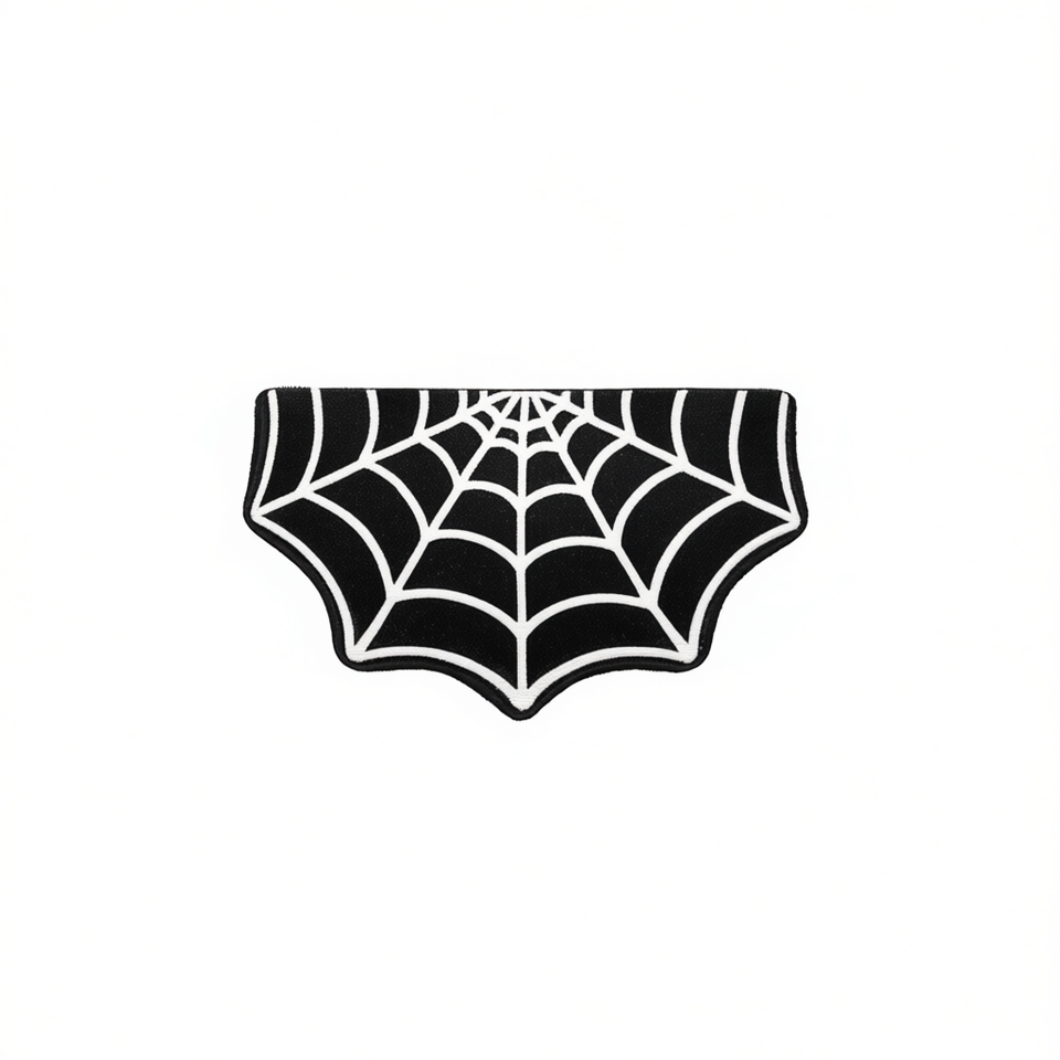 Halloween Spider Web Bath Mat Half Circle Gothic Black White Non-Slip Embroidered Synthetic Rug For Bathroom Decor 1 Pack