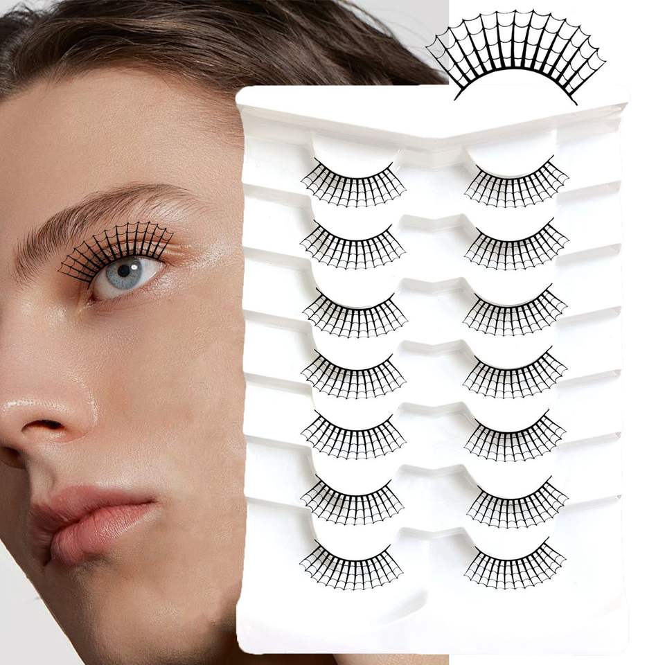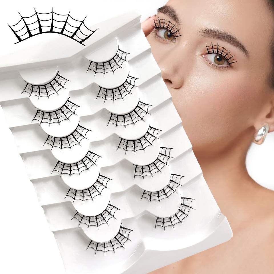 Ciglia Finte Sintetiche Halloween Troublemaker One Piece, Trucco per Carnevale e Palcoscenico, Design Ragnatela, 25mm 3D Colorate