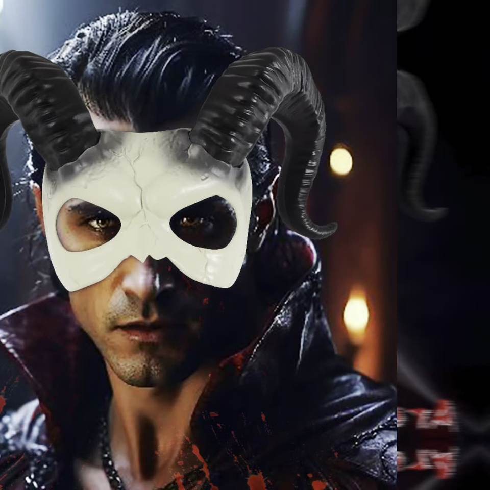 Halloween White Devil corno mezza faccia maschera personaggio delle vacanze Dress up Performance di scena
