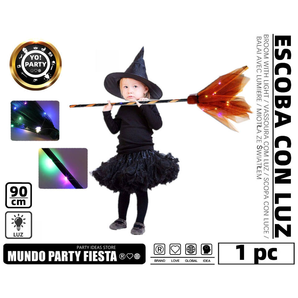 Halloween Witch Broom 90CM Black & Orange Light-Up Tulle Costume Prop#50196 Party Masks