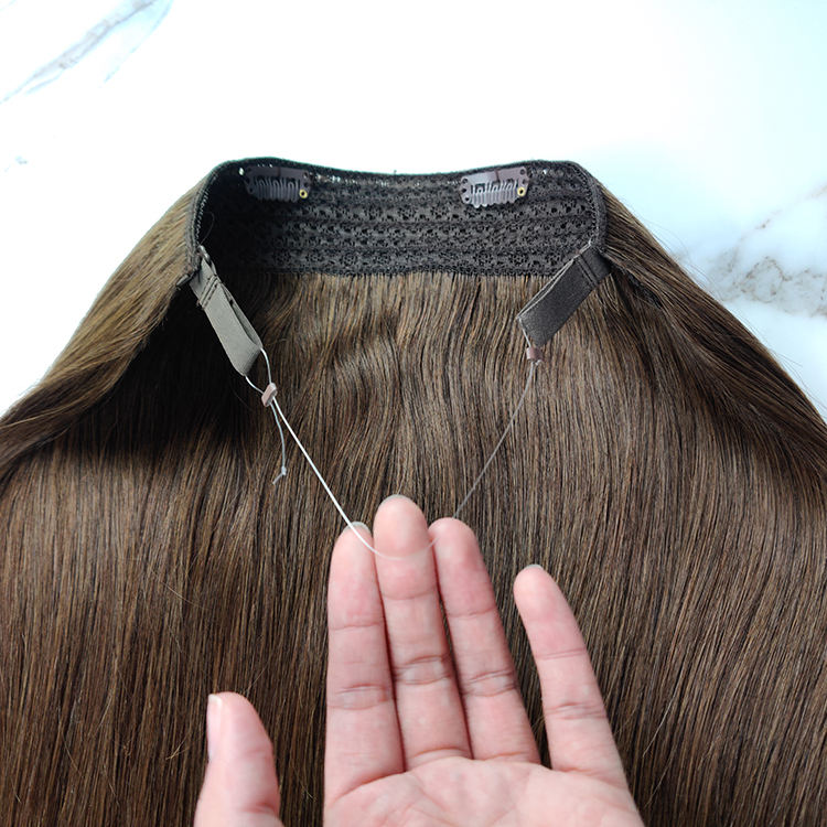 Extension per Capelli Halo Regolabili in Veri Capelli Umani con Filo Invisibile Trasparente per Donne