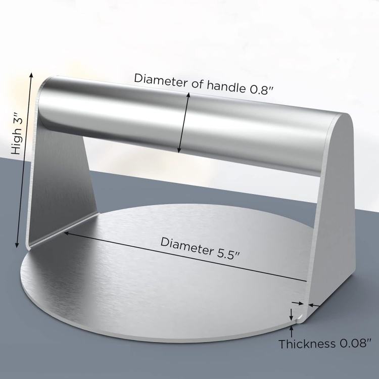 Pressa per Hamburger in Acciaio Inox per Piastra, Utensile per Smashburger, Bacon, Carne Macinata, Carne, Salsiccia